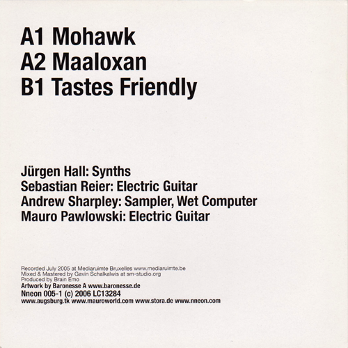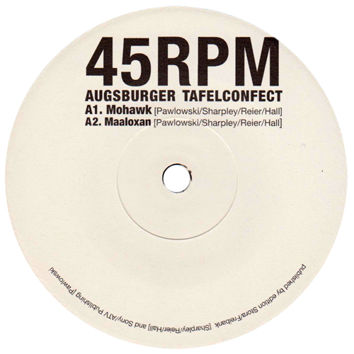 Augsburger Tafelconfect is Jyrgen Hall and Sebastien Reier. Mauro plays guitar on their 7" Friendly Mohawk Tastes Maaloxan.